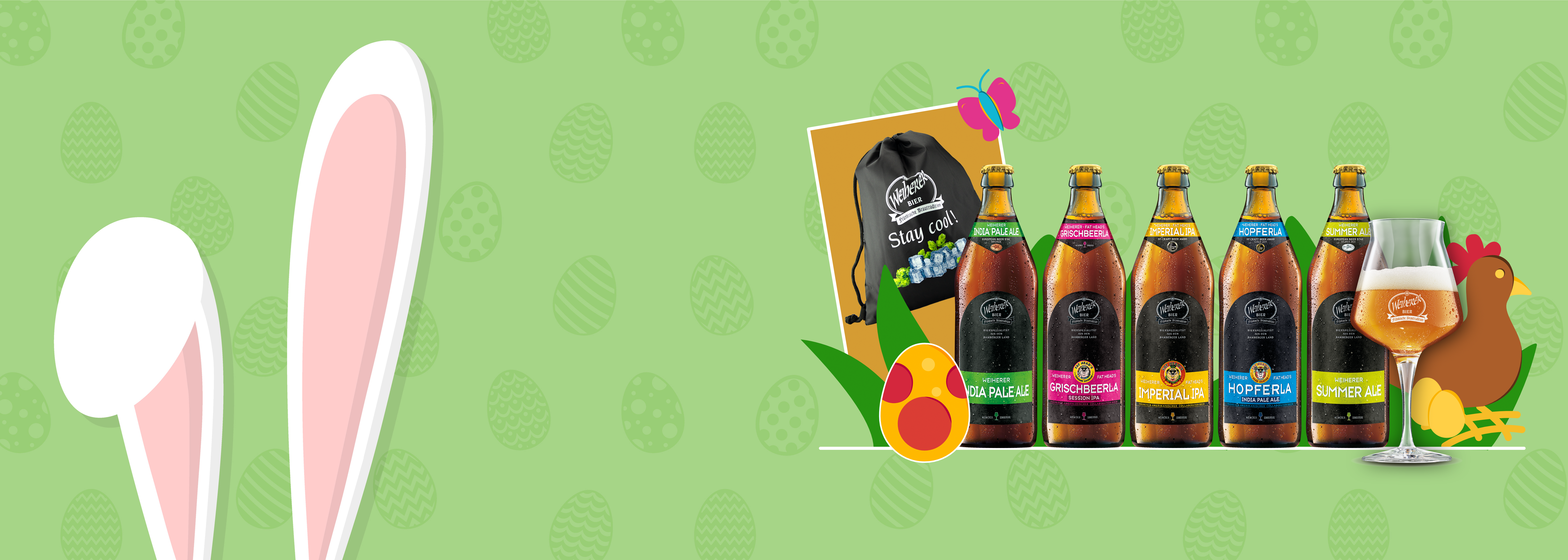 Mit dem Weiherer Osterpaket wird das Osterfest zum besonderen Genussmoment. In diesem Paket vereinen sich tolle Weiherer Ales, die bei renommierten internationalen Bierwettbewerben mehrfach ausgezeichnet wurden und für ihre hohe Braukunst sowie ihren charaktervollen Geschmack stehen. Jedes Ale bringt seine eigene Aromatik mit und sorgt für abwechslungsreichen Biergenuss über die Osterfeiertage.Damit der Genuss auch stilvoll gelingt, gehört ein passendes Weiherer Teku-Glas zum Paket. Als besonderes Extra gibt es außerdem den praktischen „Stay Cool“ Bierbeutel dazu, der die Biere zuverlässig kühl hält – perfekt für den Osterbrunch, das gemütliche Beisammensein mit Familie und Freunden oder einen entspannten Frühlingsausflug.Das Weiherer Osterpaket ist damit das ideale Geschenk im Osternest für alle Bierliebhaber oder eine besondere Möglichkeit, sich selbst zu den Feiertagen etwas Gutes zu tun.